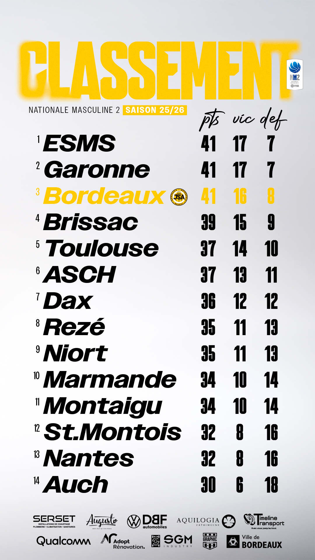 Voir tous les matchesLE CLASSEMENT 25-26